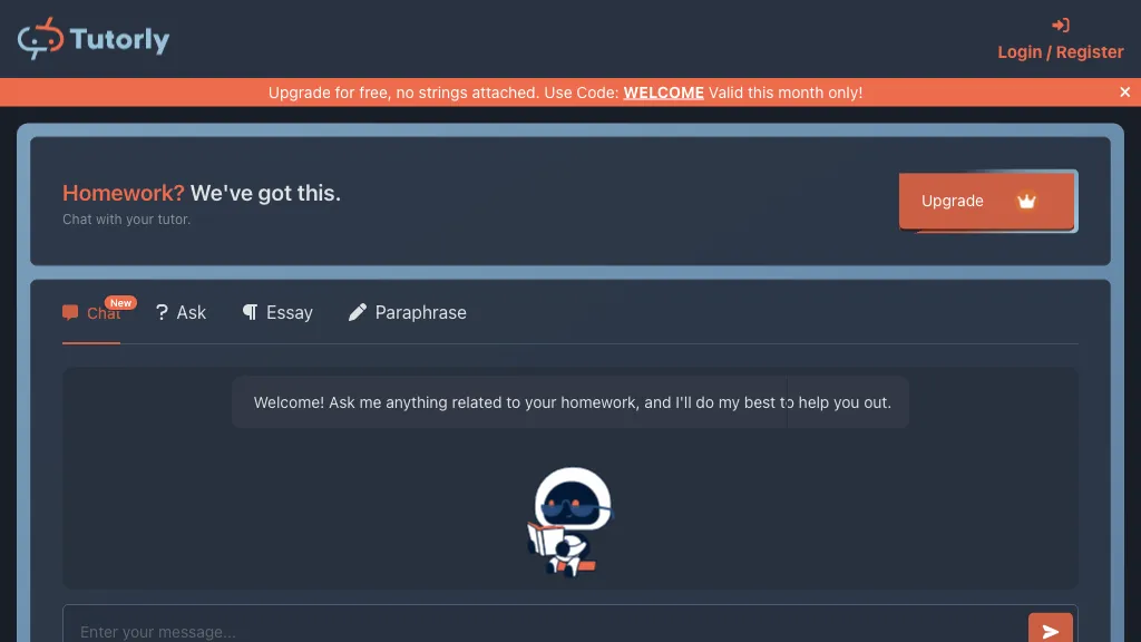 Tutorly.ai is an AI-powered homework help tool that offers a chat-based interface to students. Users can login or register for free and use the tool