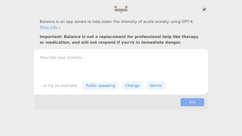 The balance app is designed to assist individuals experiencing acute anxiety by harnessing the power of GPT-4. It is important to note that the app