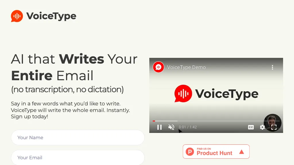 VoiceType.io is an AI-powered voice assistant that helps you write emails quickly and easily. It uses AI to convert voice to text, so you can