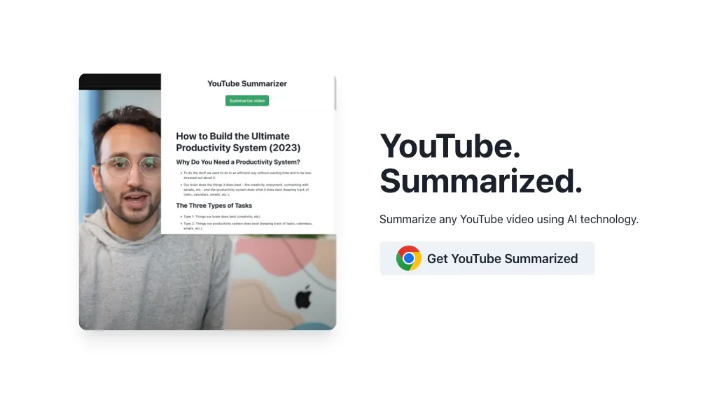 YouTube Summarized - Summarize Any YouTube Video with the chrome extension, The summaries are generated with the help of AI and are provide users with
