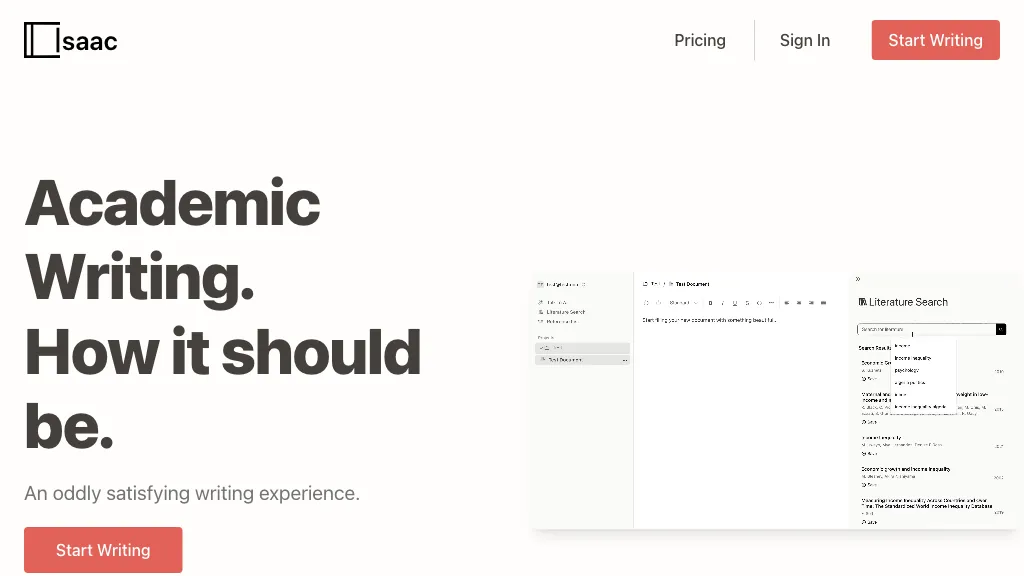 The Isaac Editor is an AI-powered text editor specifically designed for academic writing. It aims to provide an improved and satisfying writing experience to users,