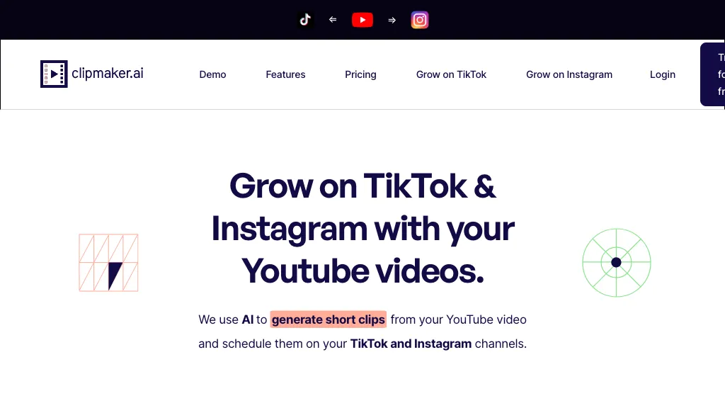 Clipmaker.ai is an AI tool that helps users grow their TikTok and Instagram followings by generating short clips from YouTube...