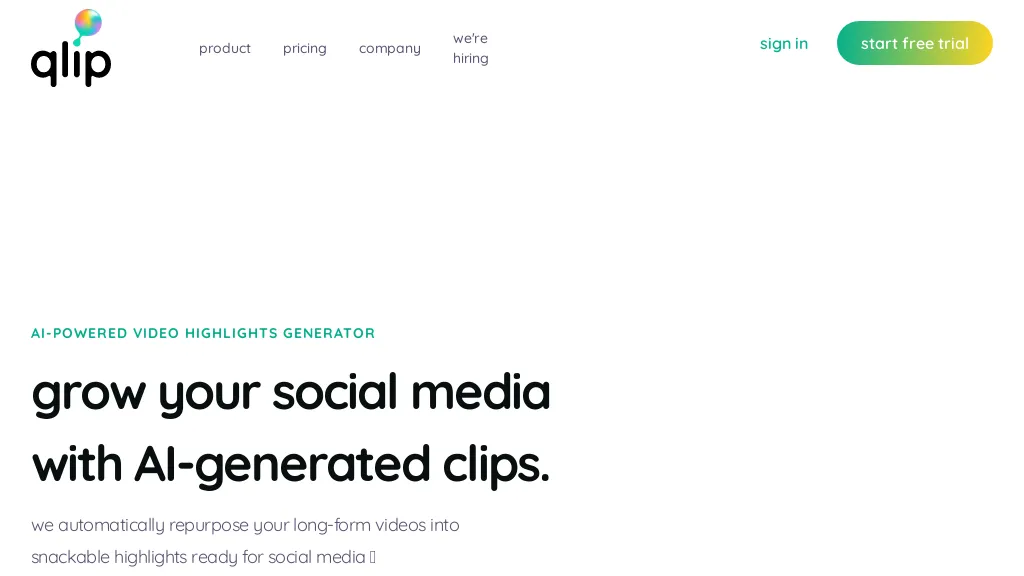 qlip.ai automatically finds the highlights of podcast-like videos and then returns ready-to-share clips for social media, saving content creators hours...