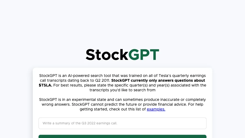 StockGPT is an AI search tool for transcripts dating back to Q2 2011. It can answer questions related to Tesla's...