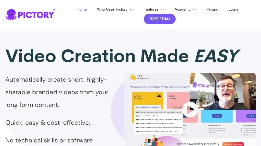 Pictori is an AI-powered tool for creating short and long-form videos quickly and easily. It requires no technical skills or...