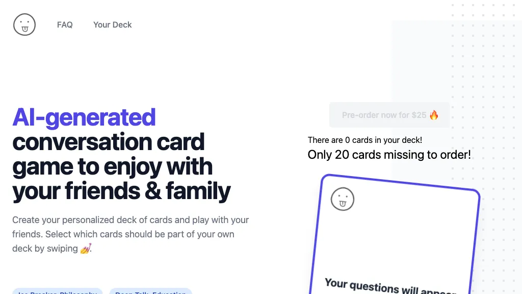 The AI tool is a conversational card game for playing with friends and family. Users can select cards from their...