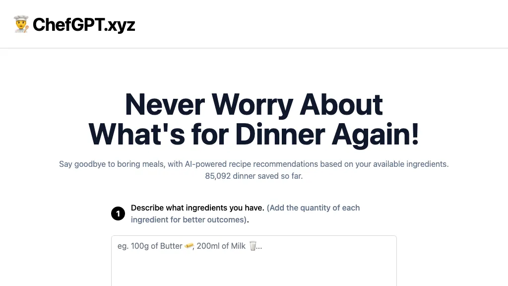 Chefgpt is an AI tool that offers four different modes: Pantrychef, Masterchef, Macroschef and Mealplanchef. Each mode provides customized recipes,...