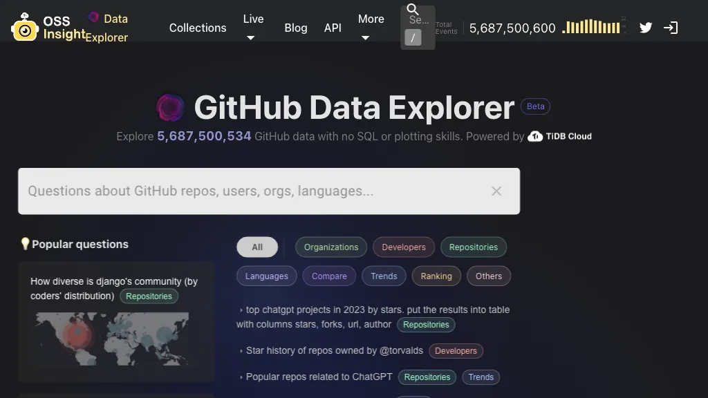 Github Data Explorer is an AI-powered tool that allows users to explore and discover insights from Github event data using...