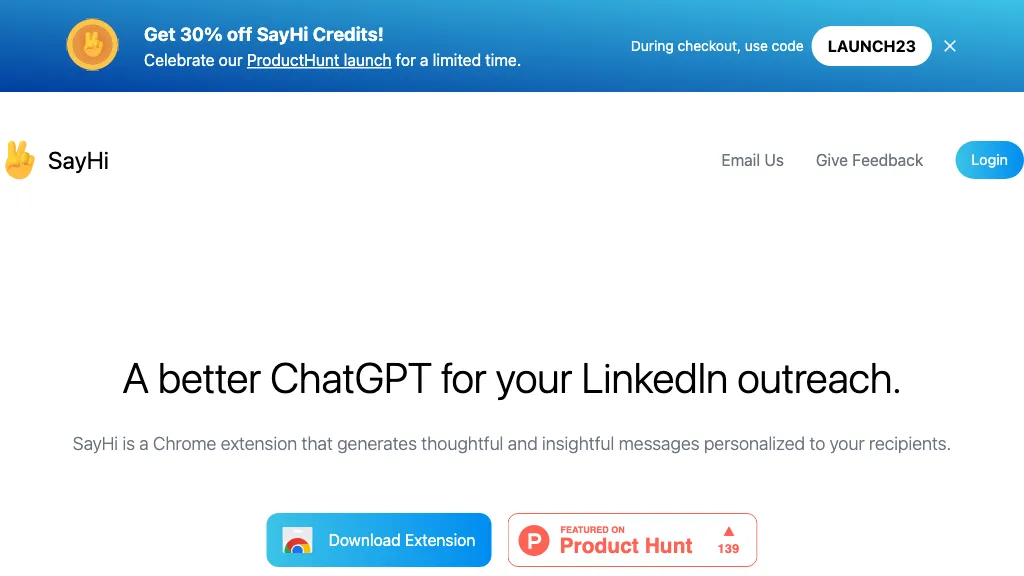 SayHi is a Chrome extension that helps users craft personalized LinkedIn outreach messages based on the recipient's public profile. The...