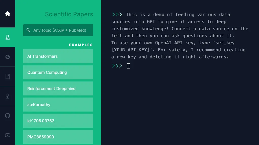 PapersGPT,is a tool that shows you a demo of feeding various data sources into GPT to give it access to...