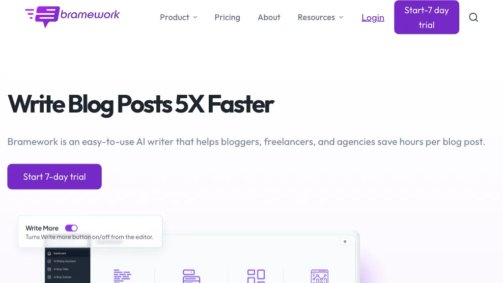 Bramework is an AI writing tool that assists bloggers, freelancers and agencies by saving time while writing a blog post....