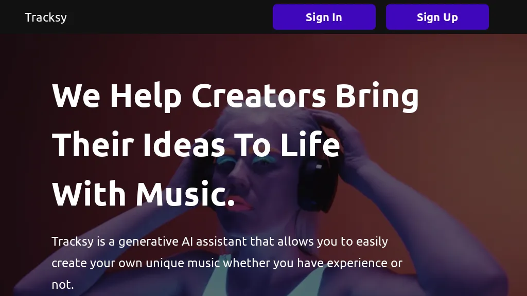 The tracksy AI music generator helps creators bring their ideas to life through music.It uses generative AI technology to assist...