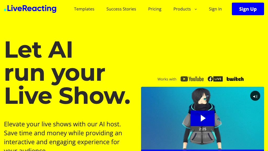 LiveReacting is an AI-based tool that offers an AI host for live shows, which can be used for various purposes...