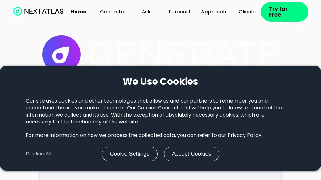 Nextatlas Generate is a generative trend forecasting service powered by large language models and the Nextatlas engine. It uses natural language processing and machine learning algorithms to analyze vast amounts of data and predict future trends across industries and markets. The tool's key feature is its ability to understand and interpret human language, allowing users to ask questions and receive accurate and relevant answers. Nextatlas Generate provides data-backed answers, including easy-to-use data visualization on emerging target interests, values, and occasions, impact on key industries and markets, and AI-generated moodboards for inspiration. Users can ask a wide range of questions, from drafting reports on future industry topics to identifying the most promising trends in a particular sector.