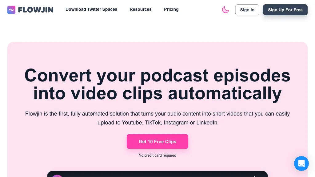 Flowjin is an AI tool that automatically generates short video clips from audio content such as podcasts. It offers a...