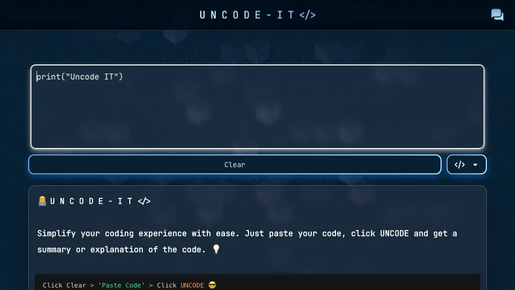 Uncode-It is an AI tool that simplifies code and provides a summary explanation to help users better understand it. Users...