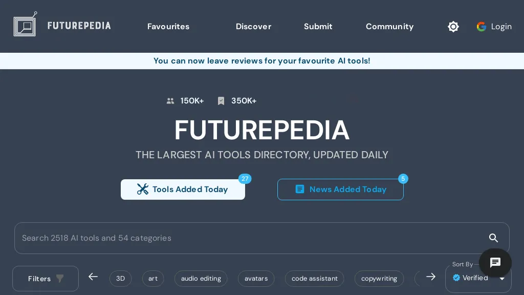 Futurepedia is the largest AI tools directory. Browse thousands of AI tools in 50+ categories like copywriting, image generation and...