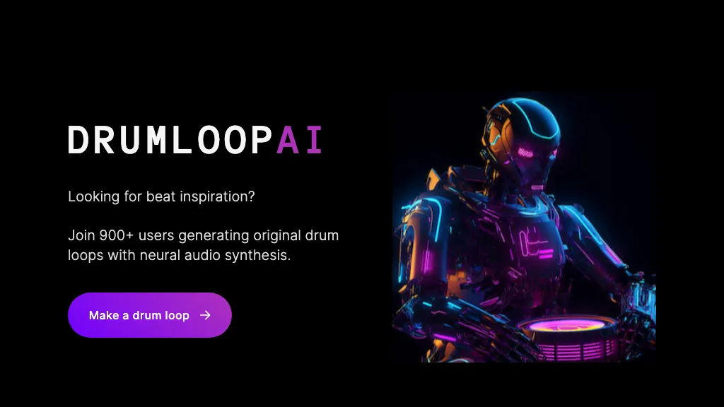 The Drumloop AI tool generates original drum loops with neural audio synthesis. Users can select the desired genre for their...