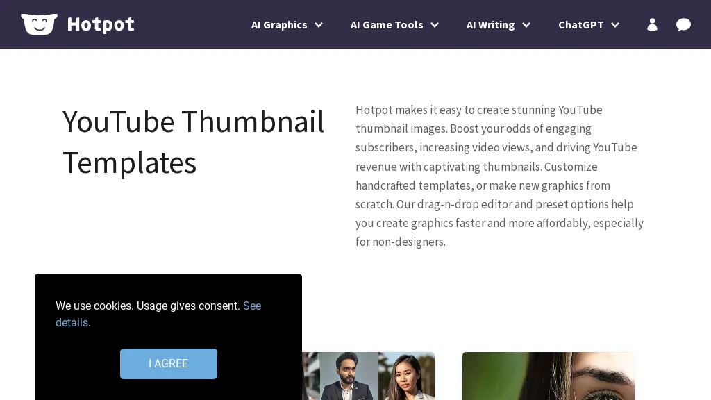 Hotpot.ai YouTube Thumbnail Creator offers an easy-to-use drag-and-drop editor with preset options and templates to help create engaging YouTube thumbnail...