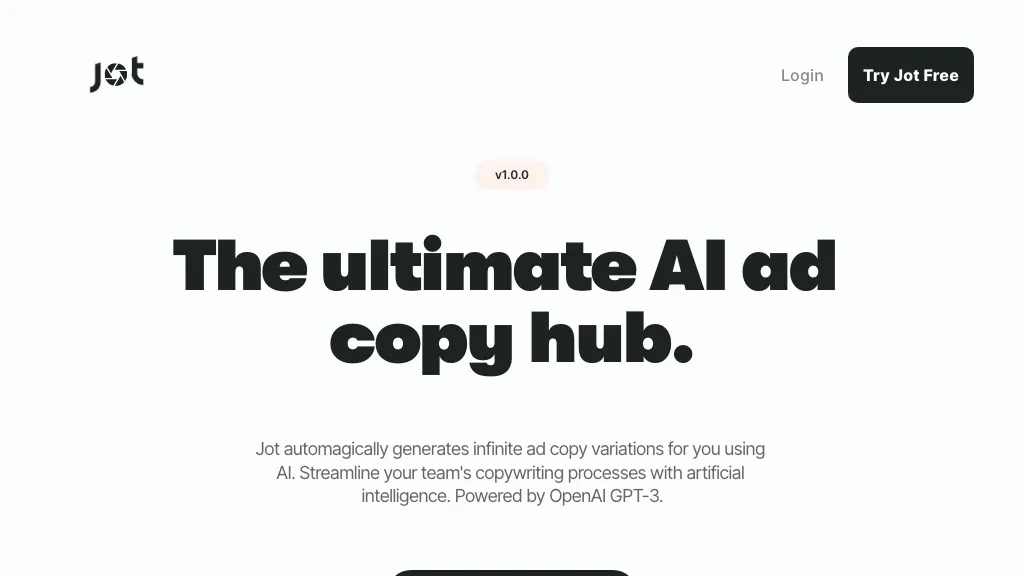 Jot is an AI tool that generates infinite ad copy variations based on a single product description using OpenAI's GPT-3....