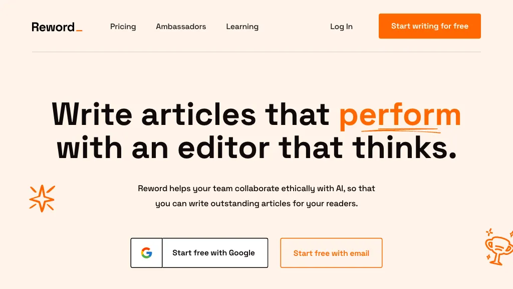 Reword is an AI tool for collaborative and ethical writing. It helps teams generate outstanding articles and improve weak content...