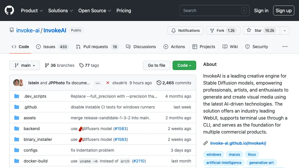 Stable Diffusion web UI user-interface with many advanced features and active development.