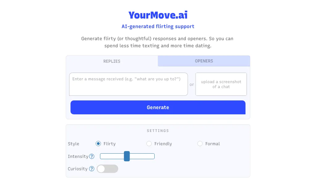 Yourmove.ai is an AI tool that helps create personalized dating profiles. It allows users to easily highlight their hobbies and...
